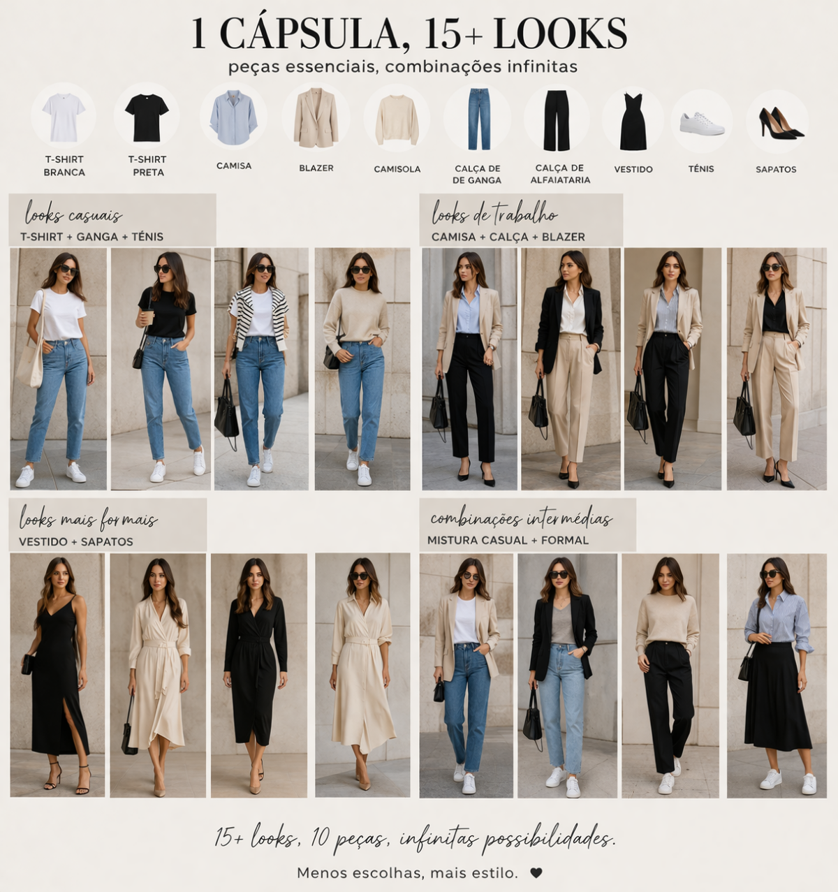 Resultado: cerca de 15 ou mais looks diferentes, sem esforço.