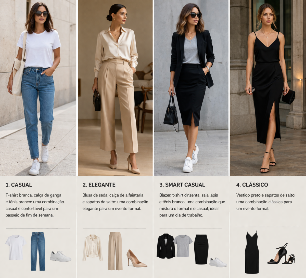 Essas são apenas algumas sugestões de peças e combinações para um guarda-roupa cápsula feminino. O importante é escolher peças que sejam versáteis, duráveis e, acima de tudo, que reflitam o seu estilo pessoal.