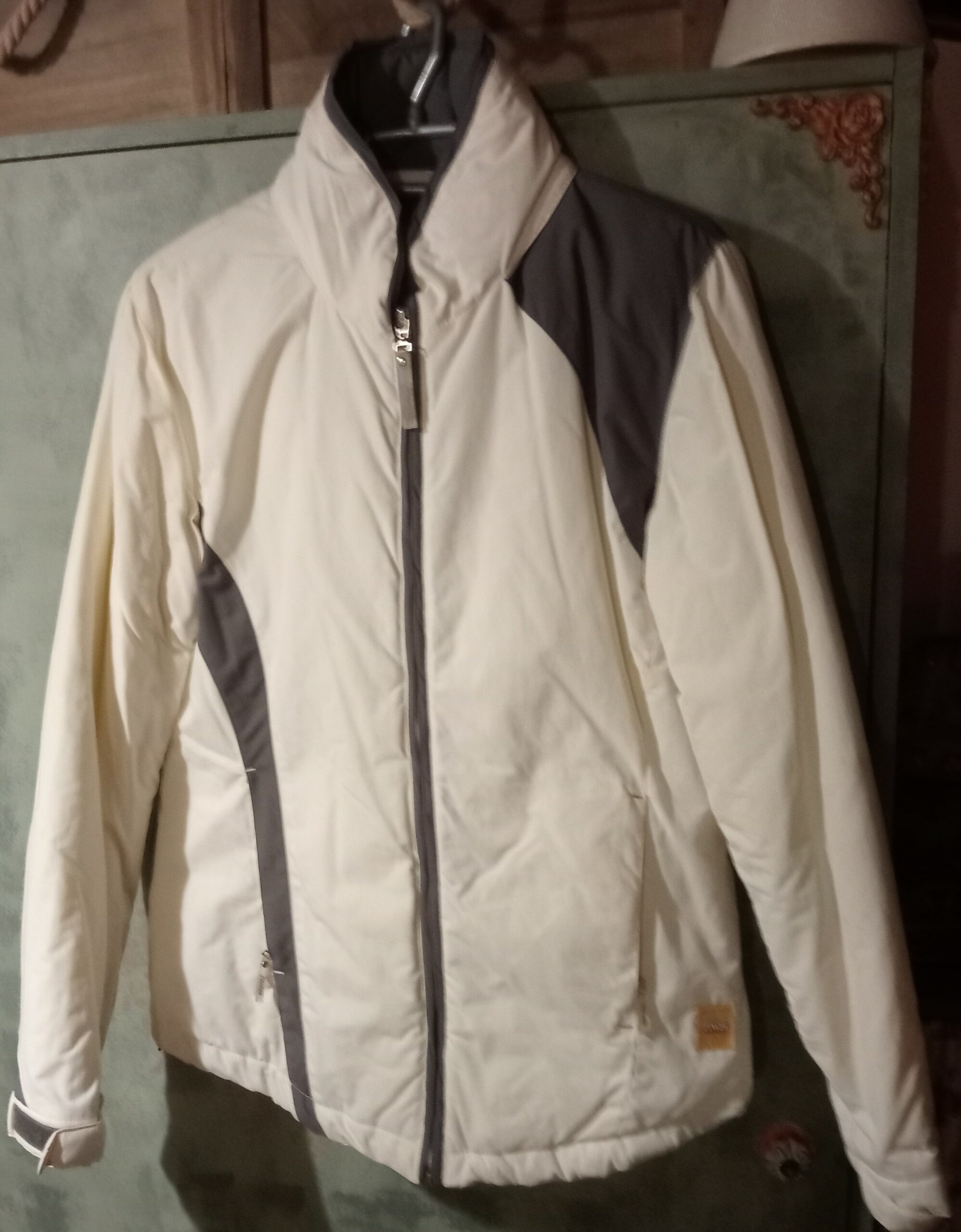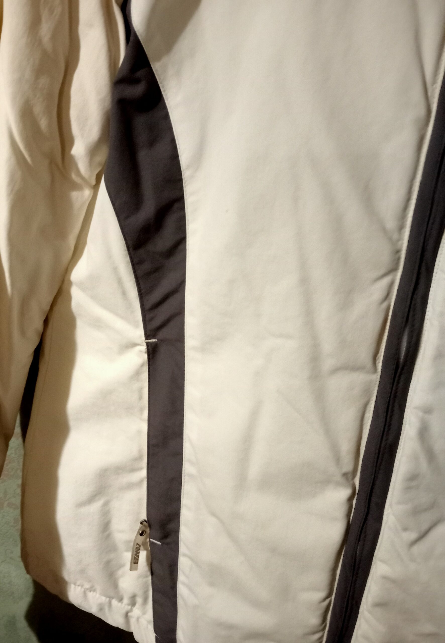 Blusão AWS, cor bege e cinza.