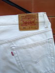 Calças Levi’s 501 Made in U.S.A. (para usuários e colecionadores). Trata-se de uma peça carismática que não deixa ninguém indiferente. Cor: branco, 100% algodão, tamanho W36L32. Compradas na década de 1990, mas usadas poucas vezes (estimadas, têm estado guardadas).